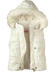 此次被召回的女童户外马甲内部填充棉花,带有褶裥花边,白色,帽子周边有人造毛。产品型号587754标在领口处的标签上。该马甲于2010年9月在全美销售,单价20美元/件。