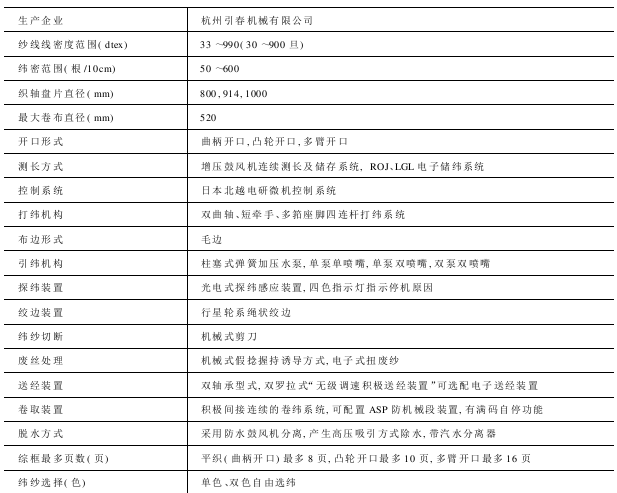 适织品种 适用于织造各种人造纤维,合成纤维为原材料的疏水性织物。合成纤维织物中包含复丝,加捻丝和免浆用丝,织物重量范围为40~500g/m 。纬丝范围33~990dtex(30~900旦)。双泵双喷机可适合两根纤度差异较大的织造。