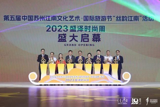 开幕式上,孙瑞哲、曹学军、韩平、盛乐、李铭、沈春荣、徐惠林、范红卫、唐金奎共同启动第五届中国苏州江南文化艺术·国际旅游节“丝韵江南”活动、2023盛泽时尚周。