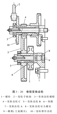 (3)不同规格的A齿轮在卷取手柄轴2上有不同的安装位置,安装时要注意。