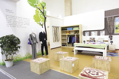 2013中国国际纺织纱线(春季)展览会上,再生与循环经济体验馆让观众亲身体验了一把低碳生活.