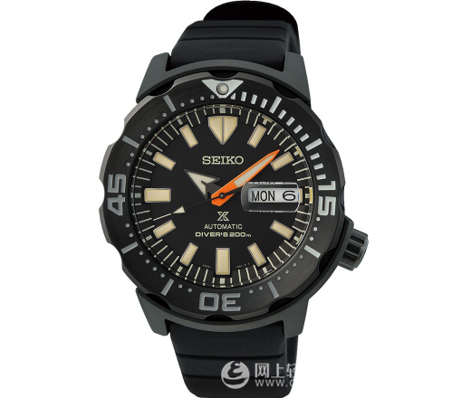 精工Prospex黑色系列怪兽腕表腕表保留了第四代怪兽腕表的所有经典设计元素,包括带有防护装置的表耳模块,以及标注超大刻度的凹槽表圈。表壳经过黑色涂层处理,配备旋入式表冠和Hardlex镜面,经过黑色涂层处理,直径42.4毫米,厚度13.4毫米,具有200米防水性能,佩戴腕间存在感十足。