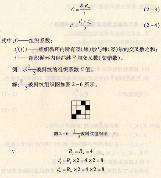 答:用组织系数C来表示织物组织的松紧程度以式(2-3)或式(2-4)表示: