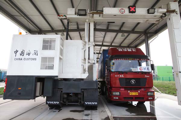 为了切实履行国境保护职能,维护试验区内的安全稳定,上海海关多措并举。一线进境货物从港口运至试验区途中继续实施海关监管车辆运输、GPS全程定位监管模式。试验区海关卡口进行了全面的智能化升级改造,并与试验区海关监管信息化系统进行联网对接。车辆过卡时,能够在系统中一次性完成车辆GPS信息核销、车牌及集装箱号自动识别、货物信息扫描验核以及卡口自动抬杠验放等程序。车辆过卡入区流程从过去的“两下(车)两上(车)4敲章”,转变为现在的“零下零上不敲章”,平均时间从6分钟缩短至30秒。