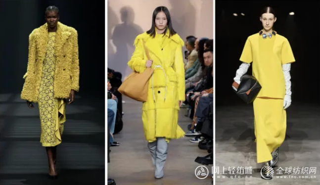 柠檬黄是2023秋冬系列中罕见的一抹亮色,这样高饱和度的色彩一般被设计师用做表达积极乐观情绪的象征,如同黑暗中的一缕光,象征着太阳与希望,传递出积极的信息。Huishan Zhang、Proenza Schouler、Jil Sander等品牌都不乏这样的亮色。