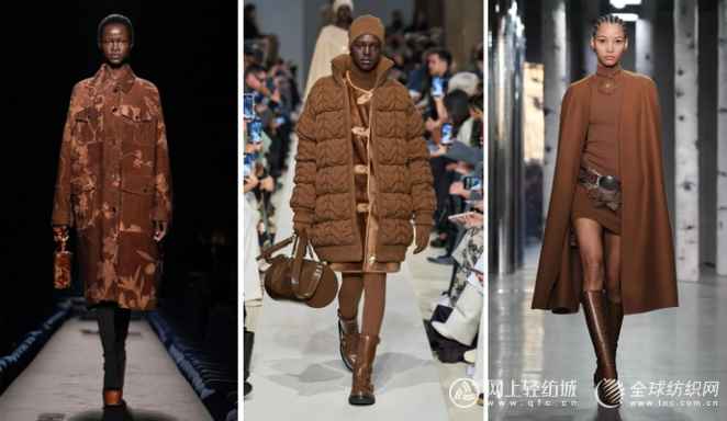 咖啡色深沉醇厚,是适用于秋冬款设计的暖色调之一,在各个品牌2023秋冬系列设计中被广泛应用,如Dries Van Noten、Max Mara、Michael Kors、Ulla Johnson、Proenza Schouler等,如秋叶之静美,质朴自然。