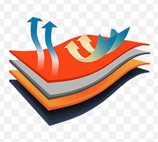 在不影响原有防水透湿性的前提下,在树脂中掺入金属粉末,形成金属层,反射人体的辐射热,减少热量散失。这种涂层适合用作冬季或高寒地带登山运动员等运动服袋,如日本东丽公司的Entrantthermo,日本旭化成的Lyonthermo[15]。当PU中掺入具有较高远红外发射率的陶瓷粉后,这种涂层则具有吸收阳光的能量或人体热量,向人体辐射远红外线,使织物保暖性能提高,并具促进人体微循环的功能[19]。如日本东丽公司的Megaclon,日本旭化成的VeraV,日本钟纺的Masonic。有些陶瓷还具有吸收氨、硫化氢等异昧的功能,混入涂层后,成为除臭的防水透气织物,如日本尤尼吉可公司Permilan和Deodrant。