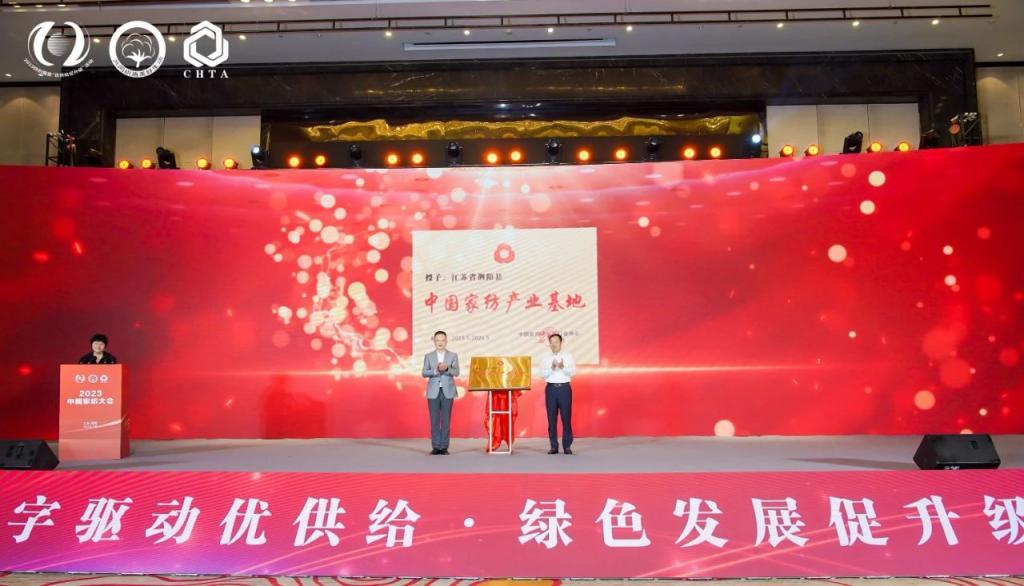 近年来,泗阳县纺织产业发展迅速,为了进一步推动泗阳家纺板块朝着绿色、科技、时尚的方向高质量发展,中国家用纺织品行业协会将与泗阳一起共建“中国家纺产业基地”,双方共同在智能制造、绿色低碳、趋势引领、研发创新、品牌建设等各方面积极开展工作,推动家纺产学研联动,实现双赢。会上,中国纺织工业联合会副会长、中国家用纺织品行业协会监事长杨兆华为泗阳县委副书记、县长范德珩授牌。