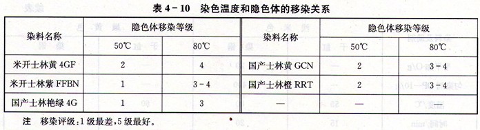 ③由于上色温度提高促进染料隐色体的移染性增大,匀染效果较好。上色温度和隐色体的移染关系见表4-10。