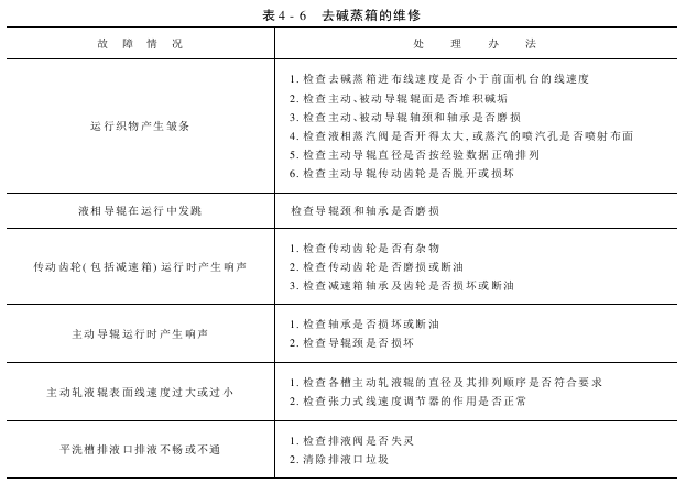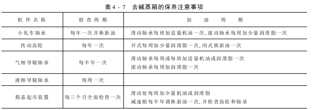 去碱蒸箱的维修和保养注意事项分别见表4-6和表4-7。