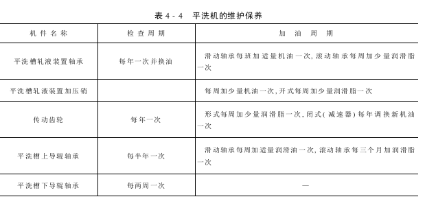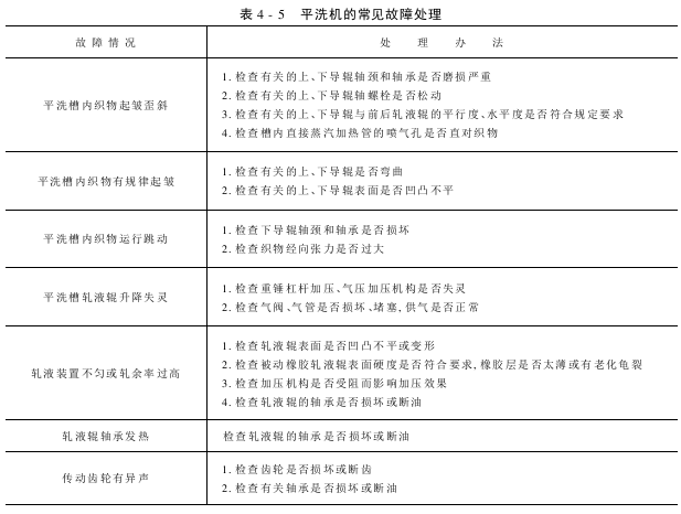 平洗机的一般维护保养和常见故障处理见表4-4和表4-5。