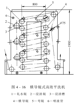 图4-16所示为横导辊式高效平洗机,它的结构特点如下: