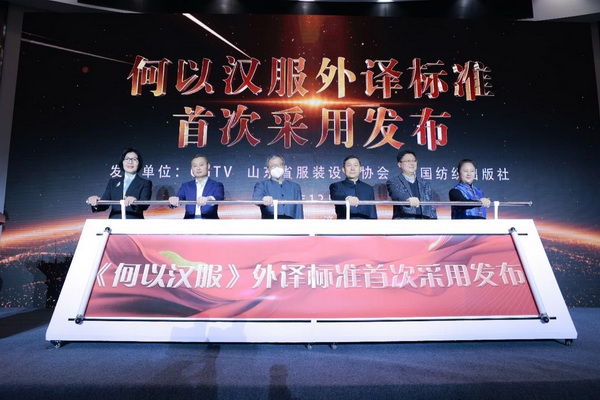 会上,泰和新材间位芳纶营销总监毕景中、山东省服装设计协会会长周锦、北京服装学院科技处处长王永进、泰和新材间位芳纶营销总监毕景中、山东服装职业学院院长马培安、中国艺术研究院教授李宏复共同揭晓《何以汉服》外译标准的首次发布。