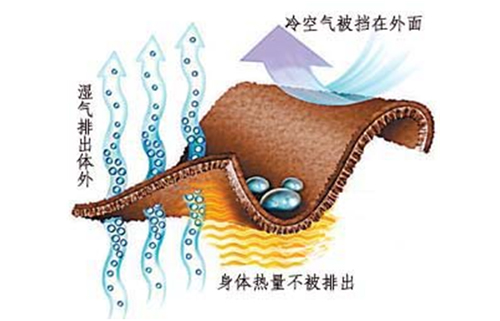 穿衣能保暖是通过降低热传导来实现的,服装缓冲了冷空气和体表热空气之间的对流,从而在保存了热量。因此,要穿衣保暖,就得完可能地减少热传导。服装中的纤维实际上是纤维、空气和水的混合物,空气是可利用材料中导热性差的,而水的导热性则较好。从这个角度出发,外衣应选择阻风性能好、有填充物的羽绒服或厚棉衣,中层服装应选择吸湿性强、松散的羊毛、羊绒、纯棉毛衣,内衣则选择吸湿排汗性强,柔软贴身的服装,在服装和人体微环境中保留更多的静止空气,导走多余水分,才能达到良好的保暖效果。