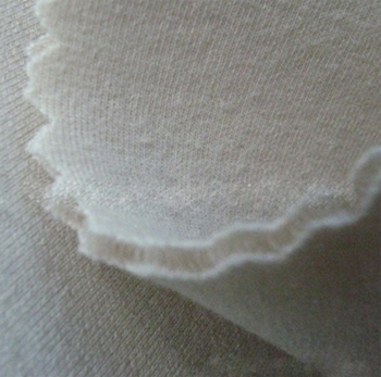 另一种三层保暖布料实际上针织物“空气层”组织布料,表层是短纤纱,里层为超细涤纶不倒绒,中间层是涤纶长丝或者短纤纱作为表里两者的连接线,在表里两层间还可添加无捻长丝束作为衬垫纱提高织物保暖性。这类产品价格相对较低,不倒绒覆盖于皮肤形成静止空气层,所以保暖效果尚可,但也因此透气性和吸湿性方面稍差。