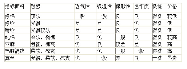 指标面料触感透气性吸湿性保形性色牢度洗涤价格