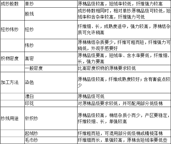 棉花纺织厂是多品种生产,品种不同时质量要求也不一样,在配棉时应全方位给以考虑。
