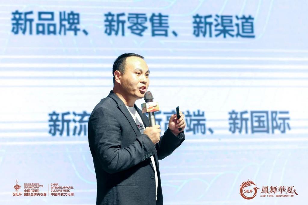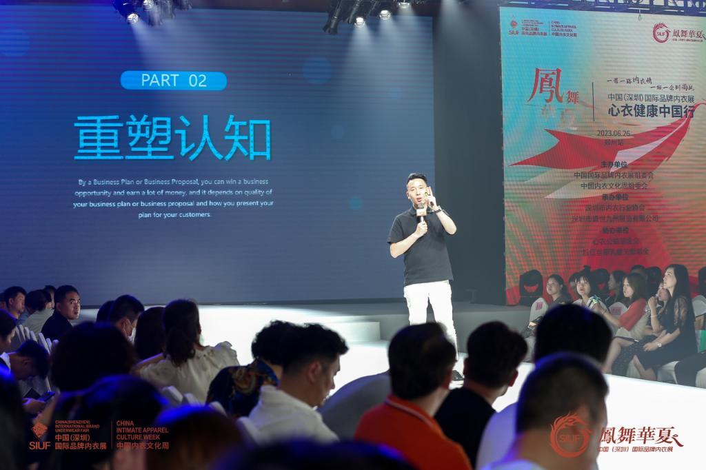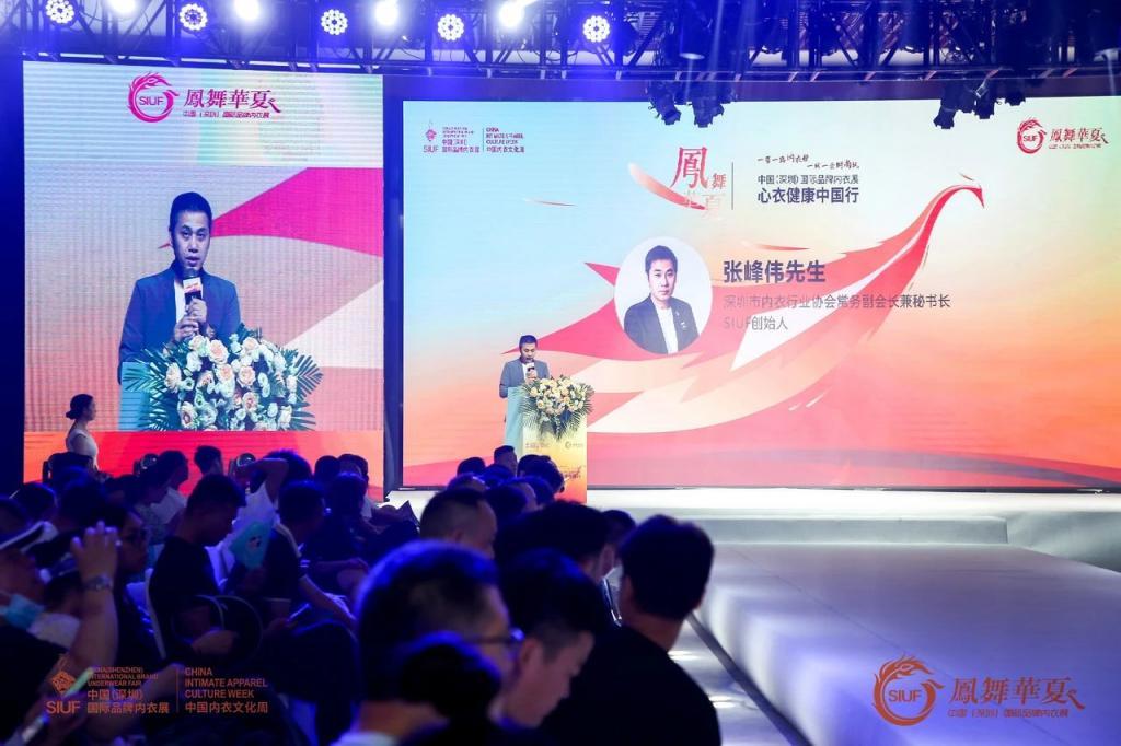 SIUF中国(深圳)国际品牌内衣展创始人、深圳市内衣行业协会常务副会长兼秘书长张峰伟发表致辞,他首先感谢各位内衣人长期以来对SIUF的关注和支持,并代表中国(深圳)国际品牌内衣展和深圳市内衣行业协会组委会向大家的到来表示衷心的感谢和热烈的欢迎。今天,凤舞华夏郑州站再次起航,活动邀请了30多家爆品厂家、40多家选品机构、200多家代理服务商、500多家内衣终端连锁等到场,项目组走遍河南进行买家邀约,使活动影响力覆盖全省,并辐射周边区域,希望“凤舞华夏”系列活动能以区域带动全国,为内衣企业带来更细化的服务。