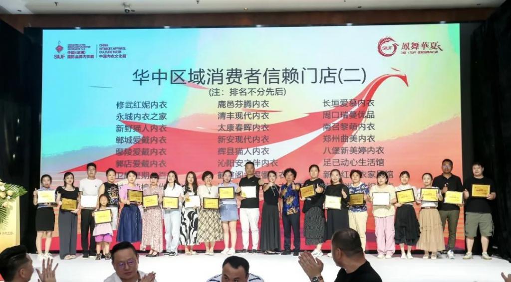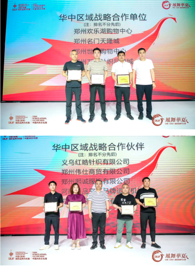 为表彰优秀内衣人、连锁品牌、门店、企业等,现场颁发华中区域内衣行业杰出贡献奖、华中区域内衣行业楷模奖、华中区域优秀连锁品牌奖、华中区域消费者信赖门店、华中区域金牌质量门店、华中区域金牌服务门店等荣誉奖项。