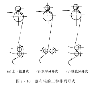 落布辊的排列形式有三种,各有其特性,如图2-10所示。