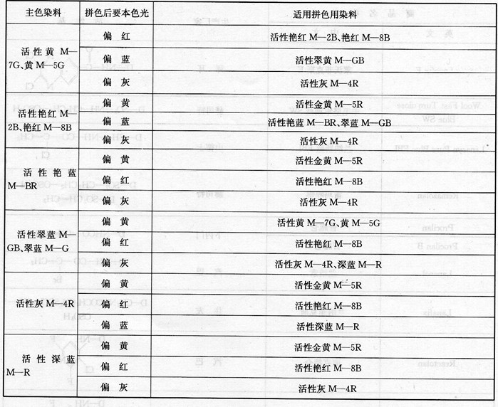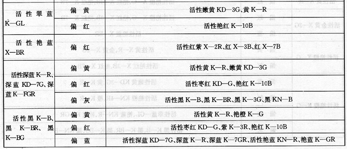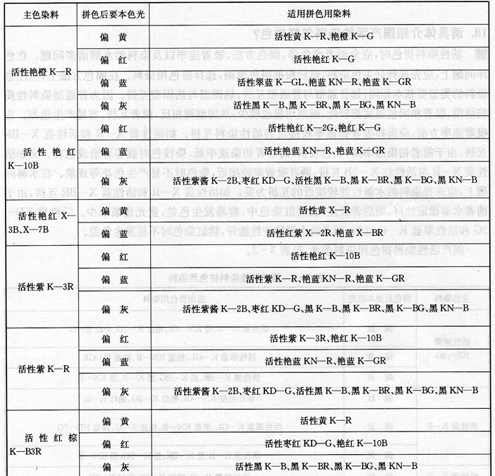 国产活性染料拼色用染料参考,见表3-2。