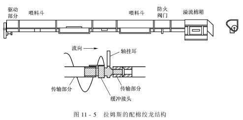 图11-5为美国拉姆斯公司生产的配棉绞龙。