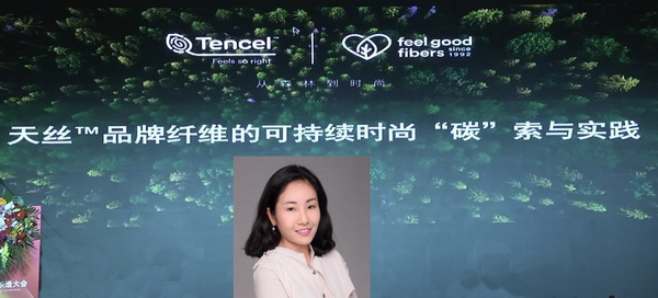 绿色发展是行业可持续的关键。兰精中国纺织事业部市场推广负责人李琦通过远程连线的方式,以《天丝品牌纤维的可持续时尚“碳”索与实践》为主题带来了精彩内容分享。,在国家“碳达峰、碳中和”目标导向下,其在绿色低碳产品与应用方面的先进经验。