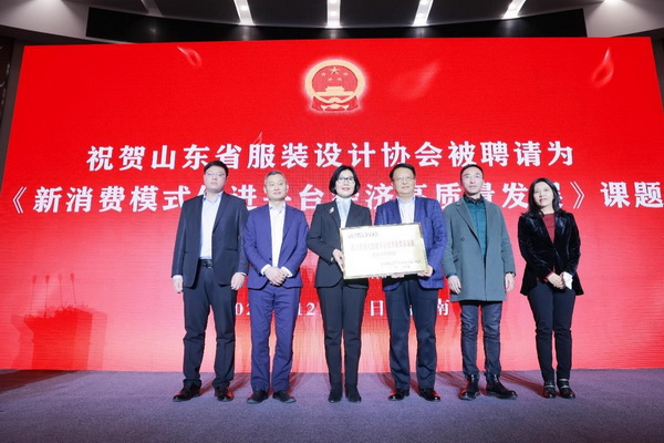 会上还举行了《新消费模式促进平台经济高质量发展》课题调研单位颁发仪式,山东省服装设计协会会长周锦接受了专家组成员奖牌与聘书。