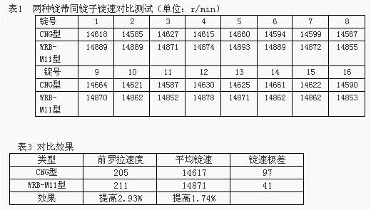 分别在5台WRB-M11型新型锭带和5台CNG型橡胶锭带不同机台,同机型,同品种上进行为期10天的统计对比分析。