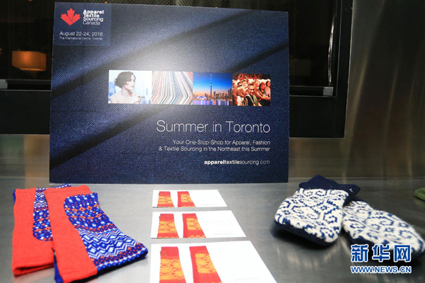 图为新闻发布会现场展示的加拿大生产的服装纺织商品。