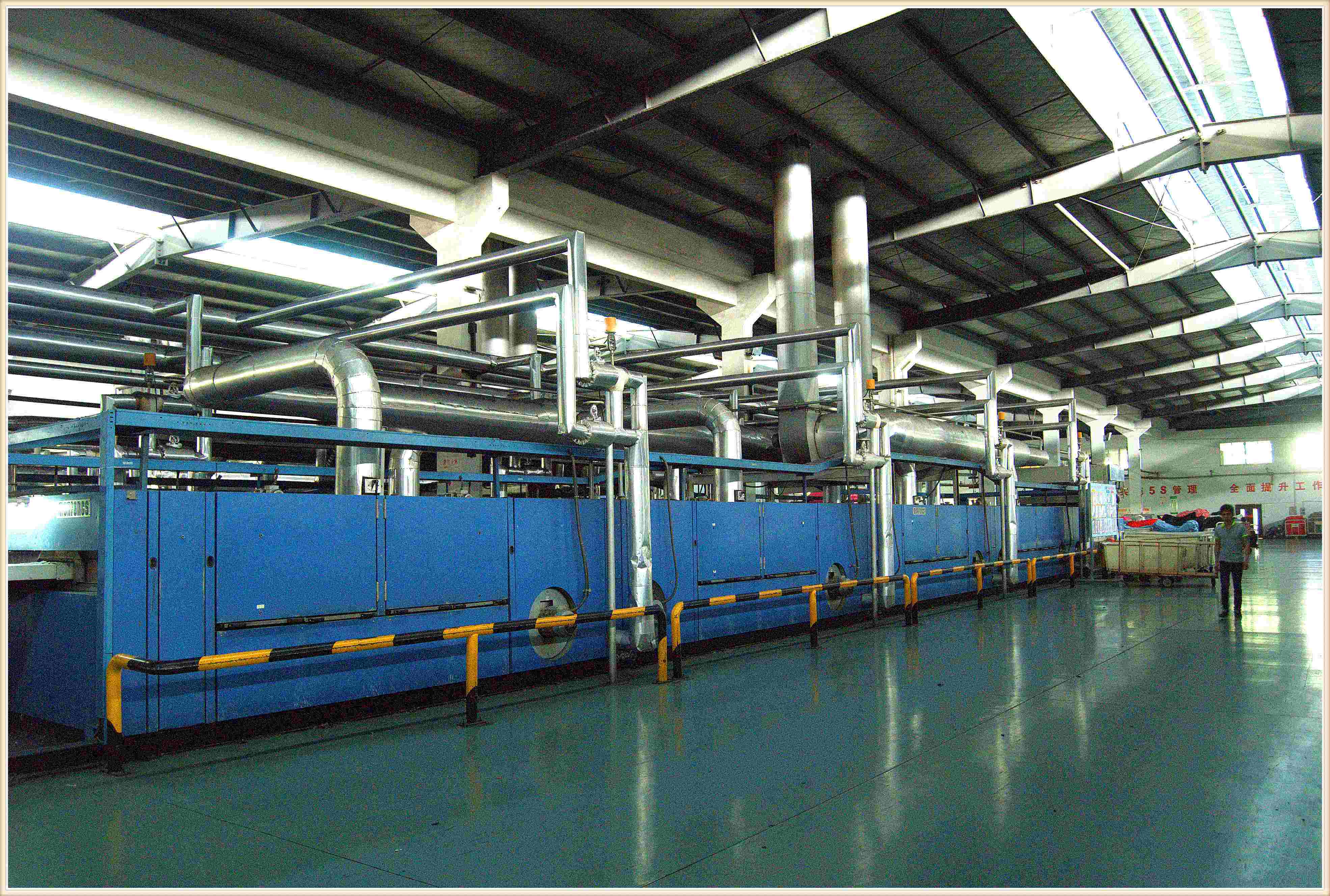 (4)用分散染料上色,浅色品种以低温型3B型红3B,黄SE 5R,蓝2BLN为三原色;中深色品种以高温型红玉S