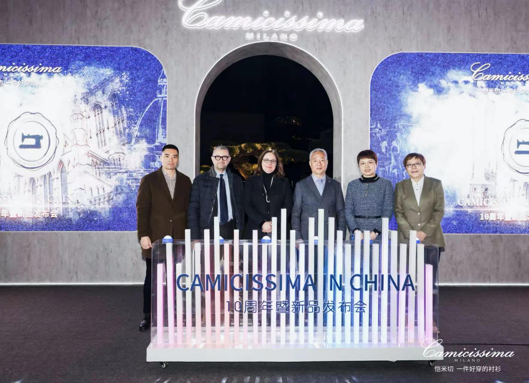 非凡时刻邀您共同见证!在启动仪式中,意大利总领事Tiziana D'Angelo女士,意大利Fenicia 集团 CEOFabio Candido先生,上海市长宁区投促办主任 游雁主任,报喜鸟控股董事长吴志泽先生,报喜鸟控股凤凰国际本部总经理葛奇鹏先生,报喜鸟控股凤凰销售本部总经理方艳云女士、为“CAMICISSIMA-IN-CHINA10周年&新品发布会”在倒计时声中点亮启动装置,共同祝福CAMICISSIMA-IN-CHINA10周年之际,开启新的优雅探险旅程!