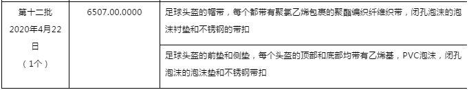 1.6507.00.0000:足球头盔的帽带,每个都带有聚氯乙烯包裹的聚酯编织纤维织带,闭孔泡沫的泡沫衬垫和不锈钢的带扣;