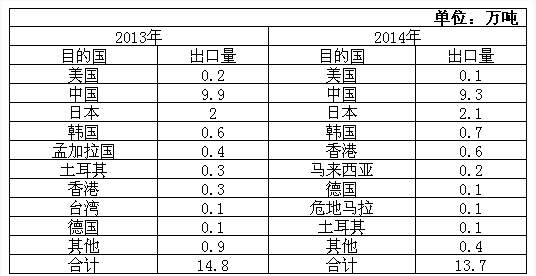 目前,电价上涨、化纤生产成本增加、棉花价格下跌而棉纱价格相对稳定促使印尼纱线生产从化纤转向棉花。此外,印尼盾贬值为印度尼西亚纺织品和纱线出口提供支撑。2014年,印尼纺织品出口额为12.85万亿美元,同比增长0.6%。棉布出口量从2013年的2.9万吨猛增到18.8万吨,出口国家和地区从10个增加到20多个。日本、比利时、意大利和美国是印尼棉布出口的主要市场。