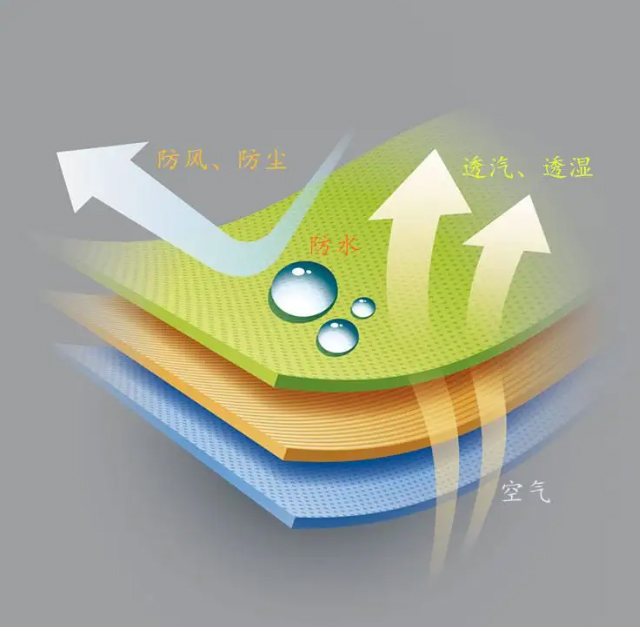 TPU/PTFE纳米纤维膜复合面料具备良好的防风、防水、透湿、抗菌性能等功能。