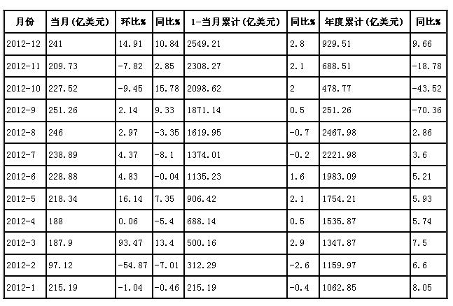 我国纺织品服装出口金额统计