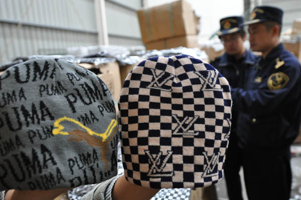 杭州海关下属义乌海关在对一票申报品名为化纤帽子的集装箱货物进行查验时发现,在大量无品牌的化纤帽子中混杂着印有熟悉的“PUMA”、”LV”等商标标识的帽子,经过两个多小时的清点共查获涉嫌侵犯“LV”帽子知识产权帽子11520顶;涉嫌侵犯“PUMA”知识产权的帽子7200顶。