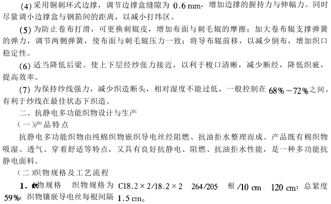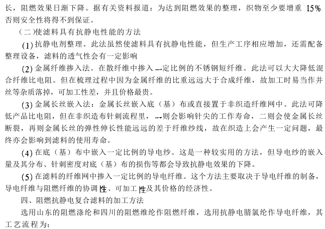 其电阻值为106~107Ω*cm。基布的抗静电可用导电纤维和聚丙烯混纺化纤织物制得抗静电基布。