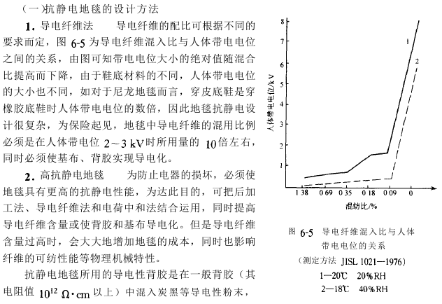 3.电荷泄漏法的抗静电界限 为确定抗静电地毯能达到的界限,可使用电阻极低的铜板和铅板,测定人体带电电位。