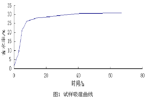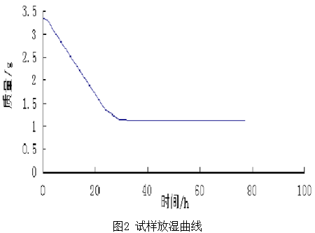 将已调湿好的纤维试样浸于蒸馏水中30min后取出,在一般脱水机上脱水10min,然后将纤维试样放到密闭容器中进行测量,测得的重量为试样的初始重量。然后将纤维放在标准温湿度下进行放湿,每隔一段时间称重一次,当前后两次称重之差和后一次重量之比小于0.05%时,视为已达到放湿平衡。实验采纳10组纤维试样,每组试样纤维质量约为1g。