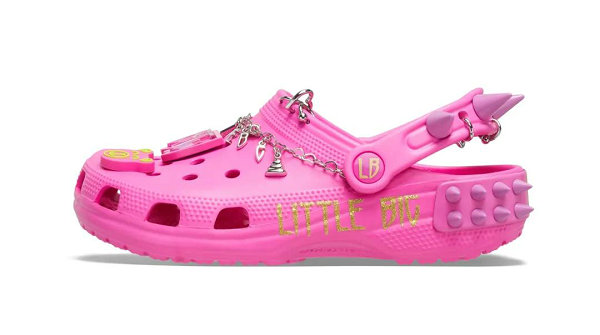 洞洞鞋品牌Crocs与俄罗斯的朋克乐队 Little Big 一同合作,打造全新联名系列,并炮制了暗黑与猛男粉两种色调的 Crocs 拖鞋。