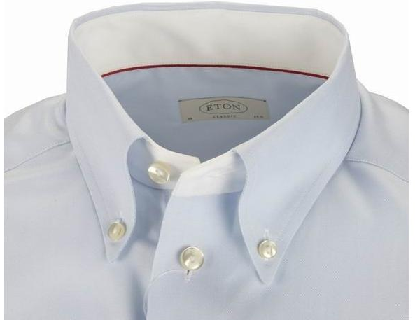 扣领型衬衫的领角部位上有扣眼,领子形状偏大,接近尖领型的样式,在西方被称为“办公室衬衫”。打领带穿着和不打领带穿着都可以,但记得在打领带穿着的时候扣好领角扣。