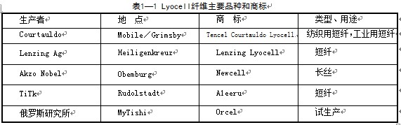 答 Lyocell、Tencel和Newcell三种纤维都属于再生纤维,是新一代无污染的绿色纤维。由于过去几十年中,在生产粘胶纤维时,使用CS2而造成废气、废水严峻污染环境,因此,这种纤维的生产受到了严格的环保政策制约,促使各国致力于研究、开发新的纤维以减少环境污染。以NMMO(N一甲基吗啉氧化物)作溶剂生产出来的纤维素纤维,由于无污染,被称为绿色环保纤维。Lyocell、Tencel和Newcell纤维都是以NMM0作溶剂生产的纤维素纤维。l944年它被国际人造纤维和合成纤维局命名为Lyocell。其短纤维称为Tencel,而长丝则被称为New-cell。Lyocell自1993年起由英国考陶尔兹(Courtauldo)公司在美国生产,其商标为Tencel……目前上生产的Lyocell纤维主要品种和商标如表1-1所示。