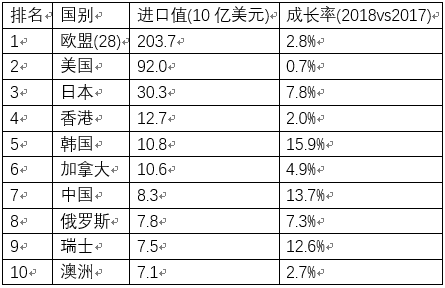 如2018年中国成衣进口总额达83亿美元,相较2017年同期有两位数的成长(13.7%)。自2010-2018年中国成衣进口年增率接近16%,相较于传统前三大进口国仅有1.8%的年增率。