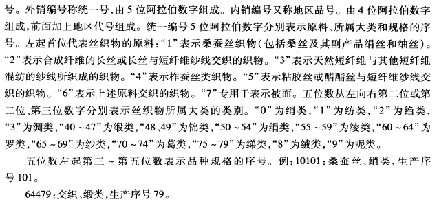 丝织物的商品名称简称品名,所编排的号码简称品号。织物的品名由设计者自己命名,编号由主管部门统一编号。二者都必须按标准化要求进行。