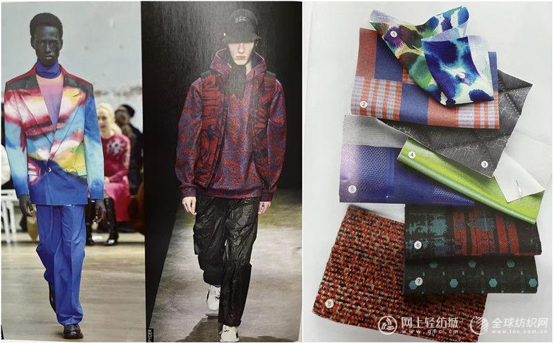 以生动、鲜明的多巴胺色彩和多样变化的纹理设计创造具有增强视觉感的趣味动感外观,是打造年轻休闲及接头系列的关键。典型的应季流行色调如亮紫色、光蓝色、星际蓝、亮玫瑰色、鲜明绿结合明暗搭配突出增强化或超现实的感官效果。