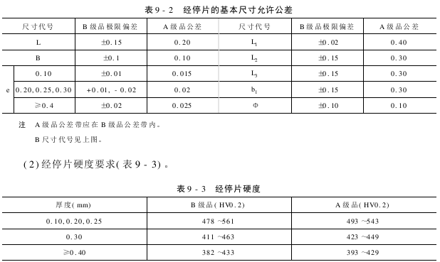 (1)各类经停片的基本尺寸同意公差(表9-2)。