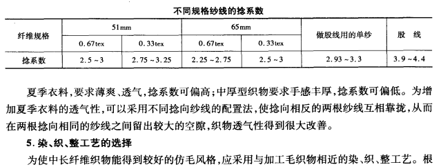 由于中长纤维是利用棉花纺织织设备来做仿毛产品的,并且其纤维比毛纤维细短,所以,为保证成纱的质量,纱截面中纤维的根数应该比毛纤维多。但如果过多,织造的