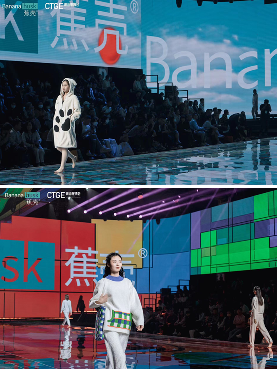 广东亨瑞科技织造有限公司携旗下蕉壳抗菌家居服登录颁奖盛典。蕉壳品牌以科技抗菌技术为核心,产品利用纱线因子技术来达到良好的抗菌效果。秀场上,模特们闲适安逸,慵懒随心,尽展品牌致简轻运动的风格。