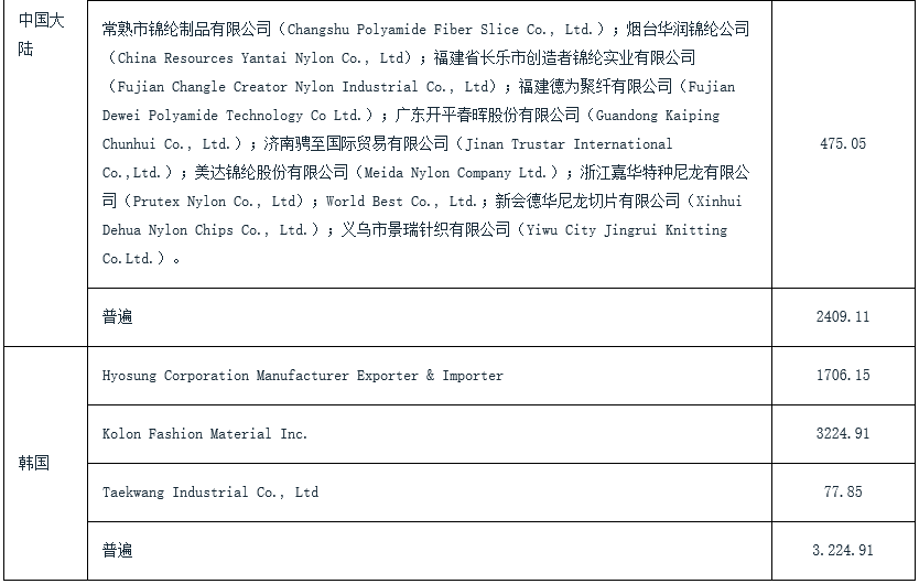 2019年12月23日,巴西外贸委员会(CAMEX)发布2019年第19号决议,对原产于中国、中国台湾地区、韩国的尼龙线(葡语:fios têxteis de filamentos contínuos de náilon)作出第一次反倾销日落复审肯定性终裁,决定继续对涉案产品征收反倾销税(具体税额见附表:涉案企业征税表),有效期为5年。涉案产品的南共市税号5402.31.11、5402.31.19、5402.45.20。